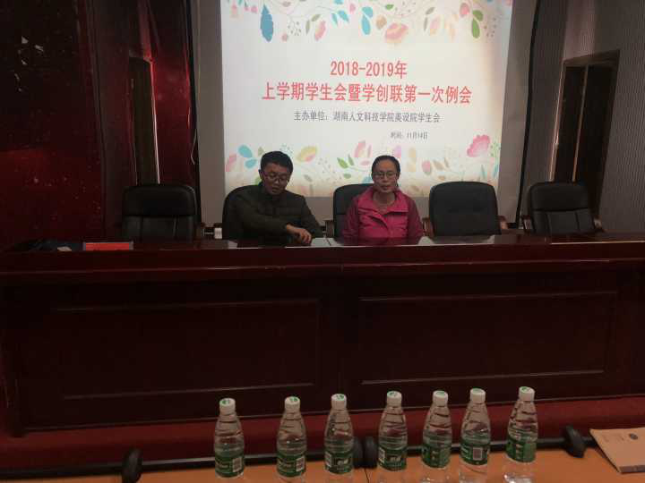1114日中午,美设院20182019年学期学生会暨学创联第一次例会在逸夫楼报告厅举行。学工办张晶露老师和分管学生会的张尚老师学生会主席张广进、刘启东、李飞飞、靳同辉、学创联主席冯晓蓓、各部门部长以及2018级全体学生干事参加了例会例会以鼓励积极进取、做好本职工作,了解职能义务、提高工作能力为主题,旨在总结汇报开学以来学生会与学创联各个部门的工作,安排后阶段的工作。