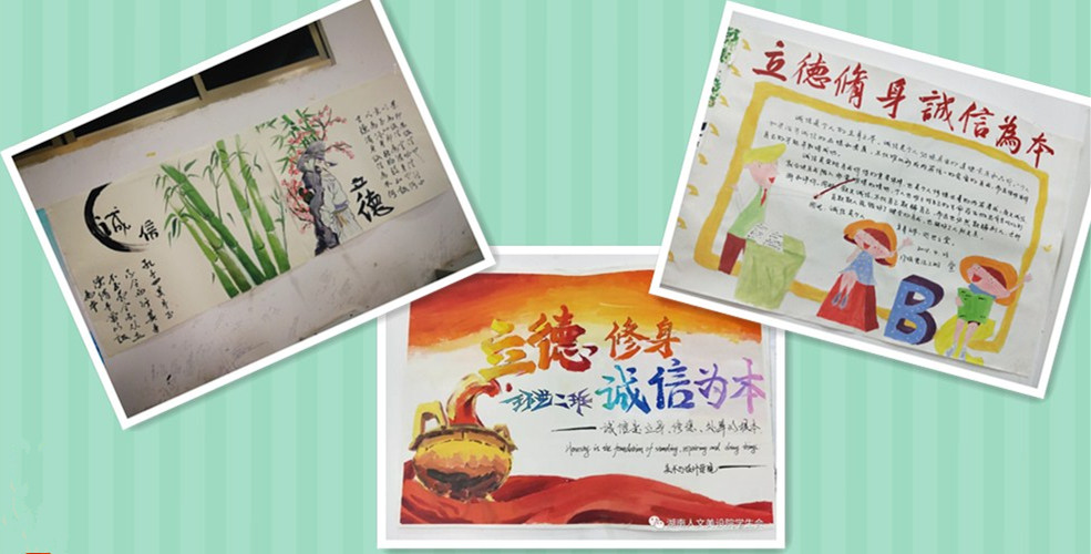 为响应校关工委的工作部署,5月2日,学院学工办在逸夫楼开展了“立德修身 诚信为本”的主题板报活动。本次活动秉承“诚信立德”原则,意在培养学生诚信待人、诚信处事、诚信学习、诚信立身的品德和行为。