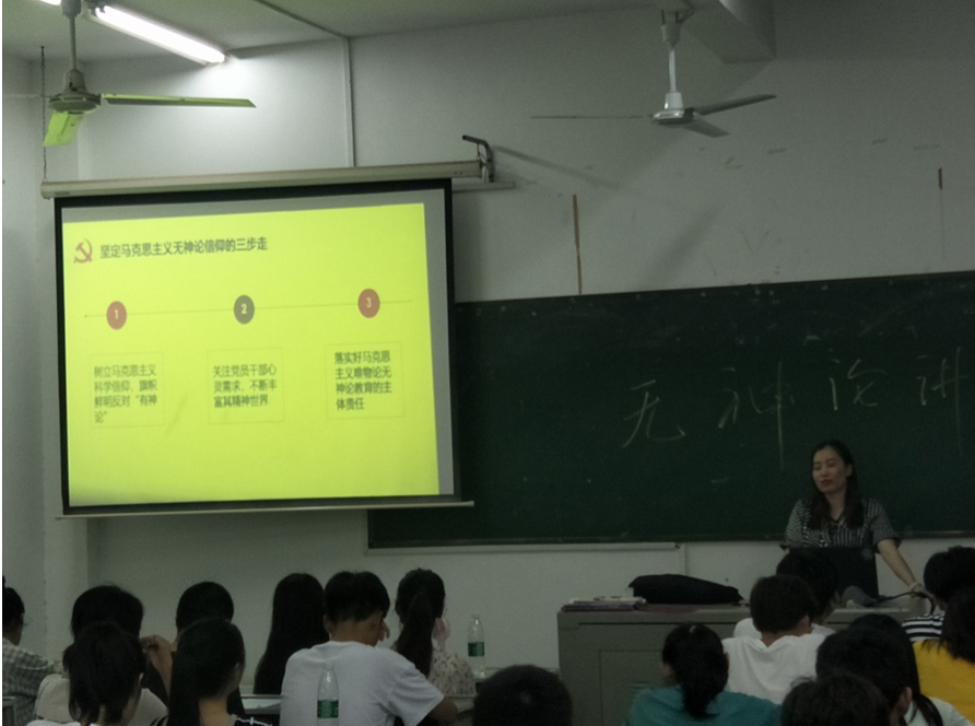 首先,副处长谢四莲给2018级书法学专业学生做了一场“无神论”专题讲座。