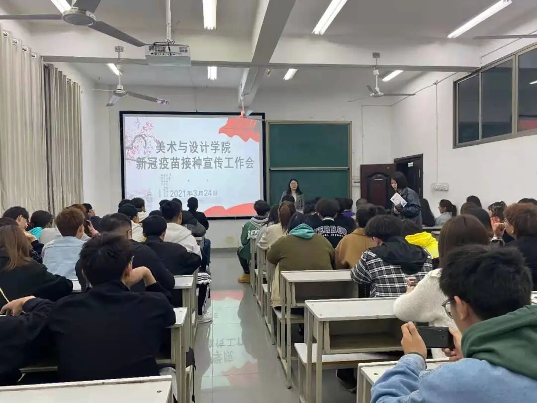 2021年3月24日晚上七点半,美设院于逸美楼409召开新冠疫苗接种宣传工作会,由学工办主任左玉洁老师主讲,参加此次会议的有各班班长、学生会学习部、活动部及督察部。