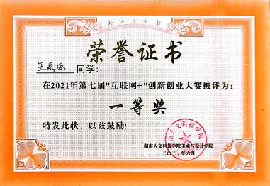 2021年12月获湖南省大学生数字媒体创意设计大赛交互设计一等奖;