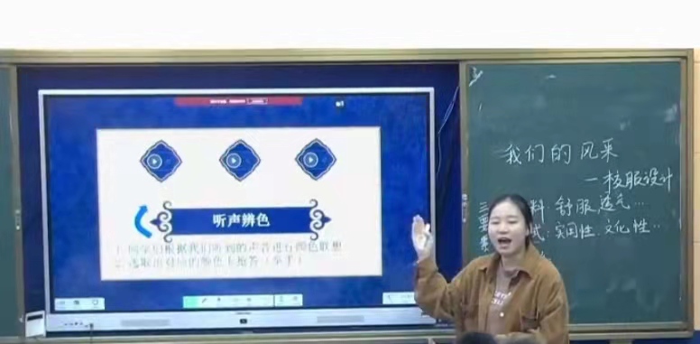 最后,优秀实习生代表王依婷、刘湘豫为大家上《我们的风采》、《非物质文化遗产皮影戏—皮影戏》公开课,赢得了同学们的阵阵掌声。