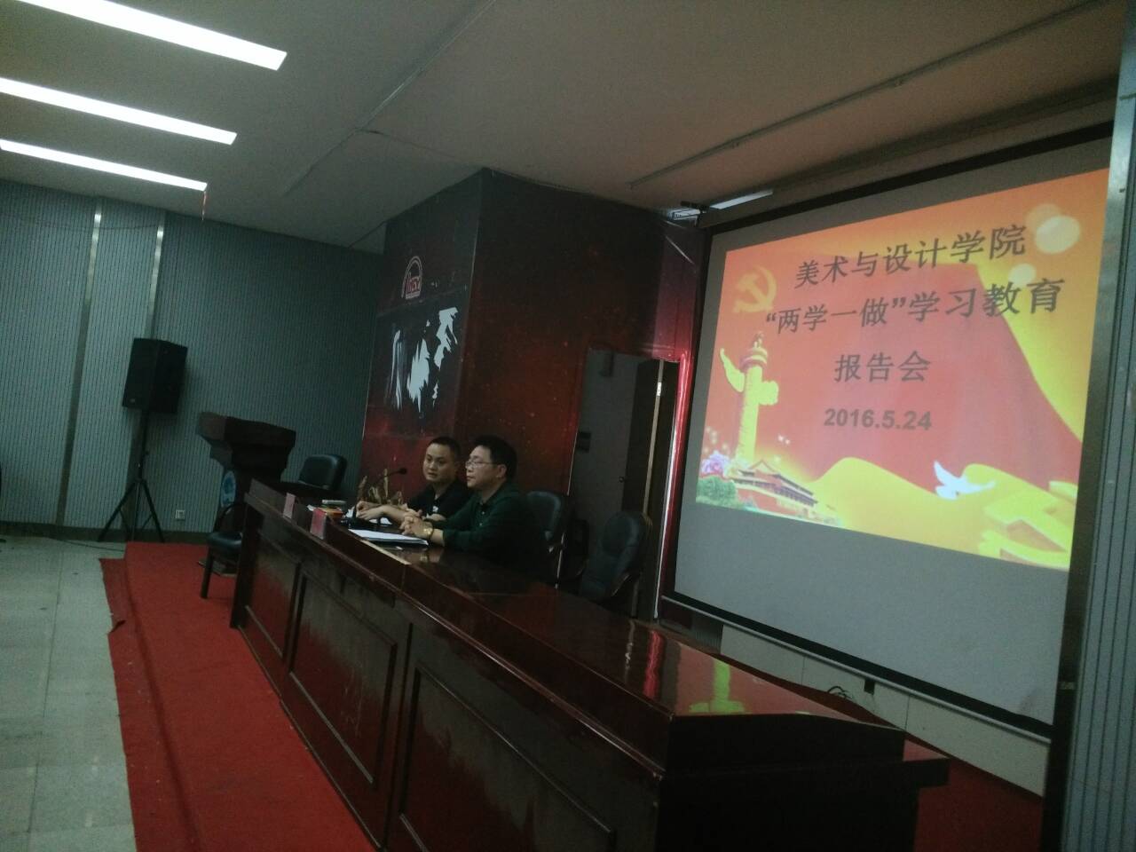 5月24日下午,美术与设计学院“两学一做”学习教育报告会在逸夫楼报告厅召开。参加会议的有全体教职工、全体学生党员。会议由党总之副书记王东光主持。