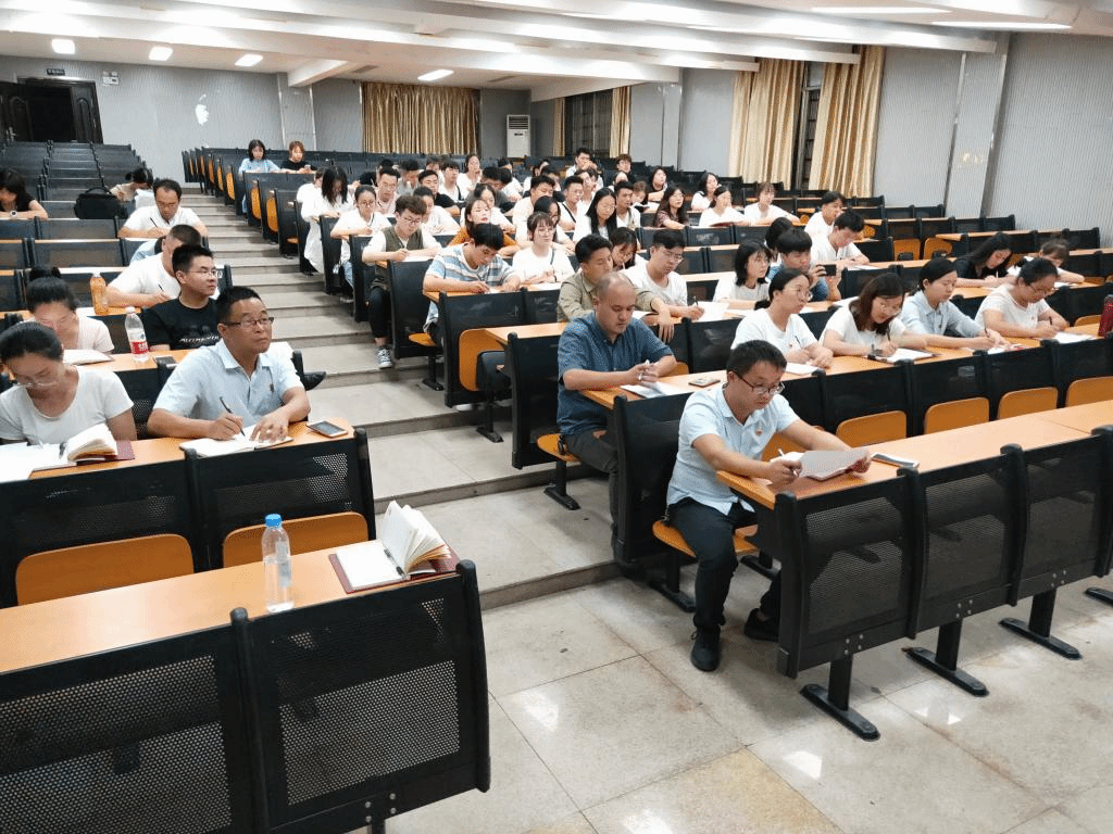 全体党员认真听课做笔记