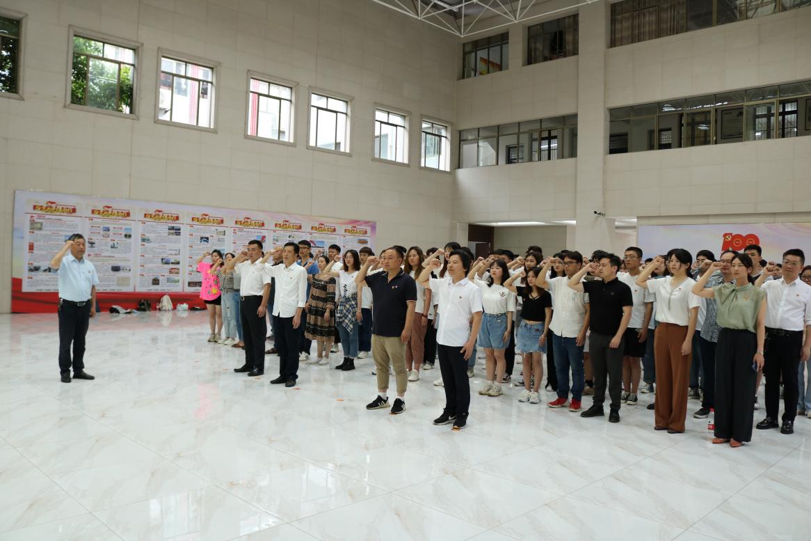 总支书记谢光绎以《毛泽东是如何走上建党道路的》为主题,带领大家回顾了毛泽东早年在东山学校求学,从充满抱负的少年开始向壮怀激烈的青年知识分子的转变,并逐渐走上了职业革命家道路的成长经历,号召全体师生党员向革命先辈学习,坚定信念,踏实工作,将一生献给伟大的共产主义事业。在场全体师生党员深受了一次深刻的党性教育。党员们整队到学校教学楼瞻仰主席铜像,深深地三鞠躬,表达对主席的深深敬意。瞻仰完毕,全体党员举起右手,集体重温了入党誓词,誓词虽短,却意味深长,需要党员们用一生去践行