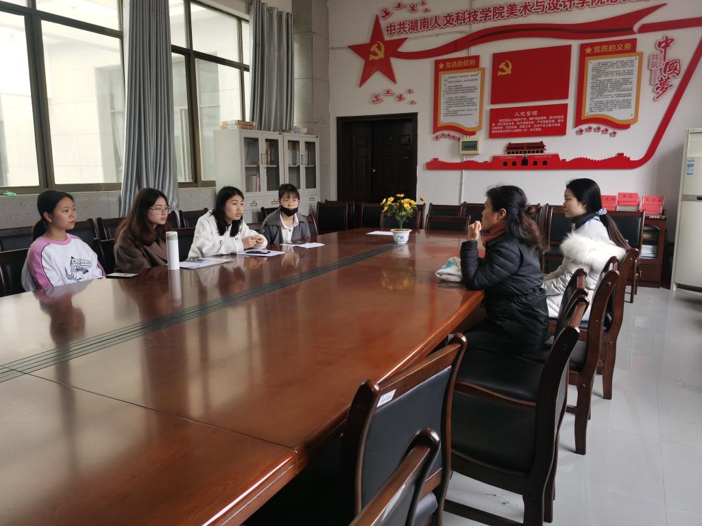 4月8日上午,小央美培训机构娄底分校前来我院招聘美术教师,该培训机构主要针对6-12岁的小朋友的国画教学,美术专业毕业生4人有意愿到小央美就业,并与小央美娄底分校校长进行面对面的沟通和现场面试。