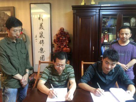 通过多方位的沟通和考察论证,最终达成合作意向,并由美术系主任邹少灵与科美装饰集团总裁谭铁牛共同签订《校外实践教学基地合作协议书》。