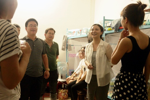 2014年09月12日晚上,beat365副校长石潇纯在美术系党总支书记李小林、系主任邹少灵、副主任陆序彦和2014级辅导员及新生班主任陪同下前往学生公寓看望了我系2014级新生。