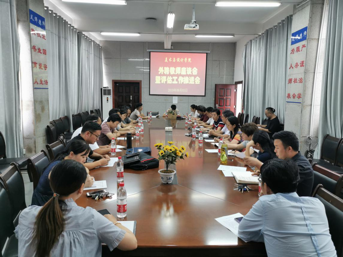 9月3日星期二下午,美术与设计学院在逸夫楼216会议室召开外聘教师座谈会暨评估工作推进会。美术与设计学院近20位外聘教师、党政领导、教研室主任、校院两级教学督导及教务人员出席会议。教务处处长羊四清、教师发展中心主任毛攀云参加会议并在会上发言。
