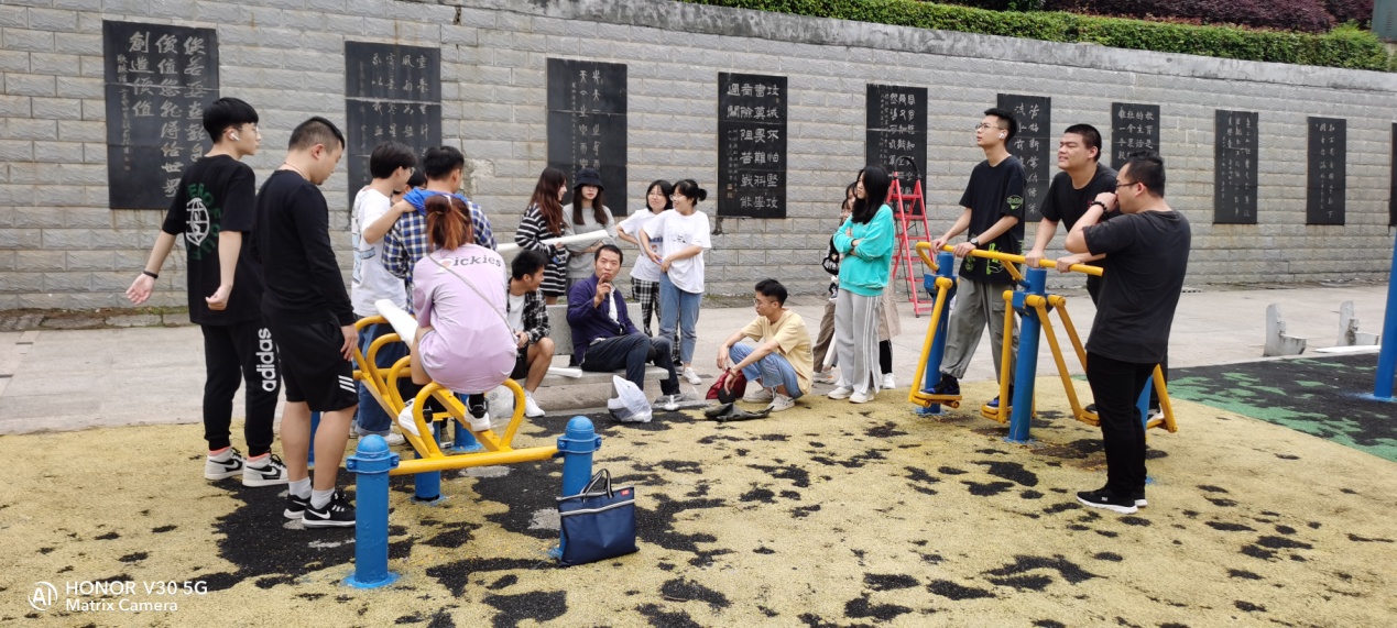 宁亮成在逸夫楼多媒体报告厅进行碑拓理论讲解和实践示范后,带领学生到海园广场进行碑拓实践操作。宁老师从做拓包到清理碑刻、上纸、喷水、捶拓、揭拓等程序,不厌其烦开展演示教学,极大地激发了学生们做碑拓的热情,轮番上阵爬上梯子进行操作。因不时刮风,有的碑拓组反复无数次才拓成功,有的学生晚上还加班加点在海园广场做碑拓。