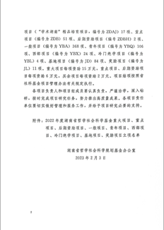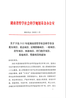 2月3日,湖南省哲学社会科学规划基金办公室公示了2022年度湖南省社科基金年度项目拟立项名单,我院教师贺文彬主持的《清末民国时期湖南颜体书风研究》获批为一般项目,李卫婷主持的《梅山区域传统民居建筑基因识别与图谱研究》、梁可嘉主持的《湘中非遗傩狮舞数字化保护研究》2项获批为青年项目,李弢主持的《梅山宗教美术研究》、罗颖主持的《运用湖湘红色文化资源提升主流舆论引导力研究》2项获批为西部项目。