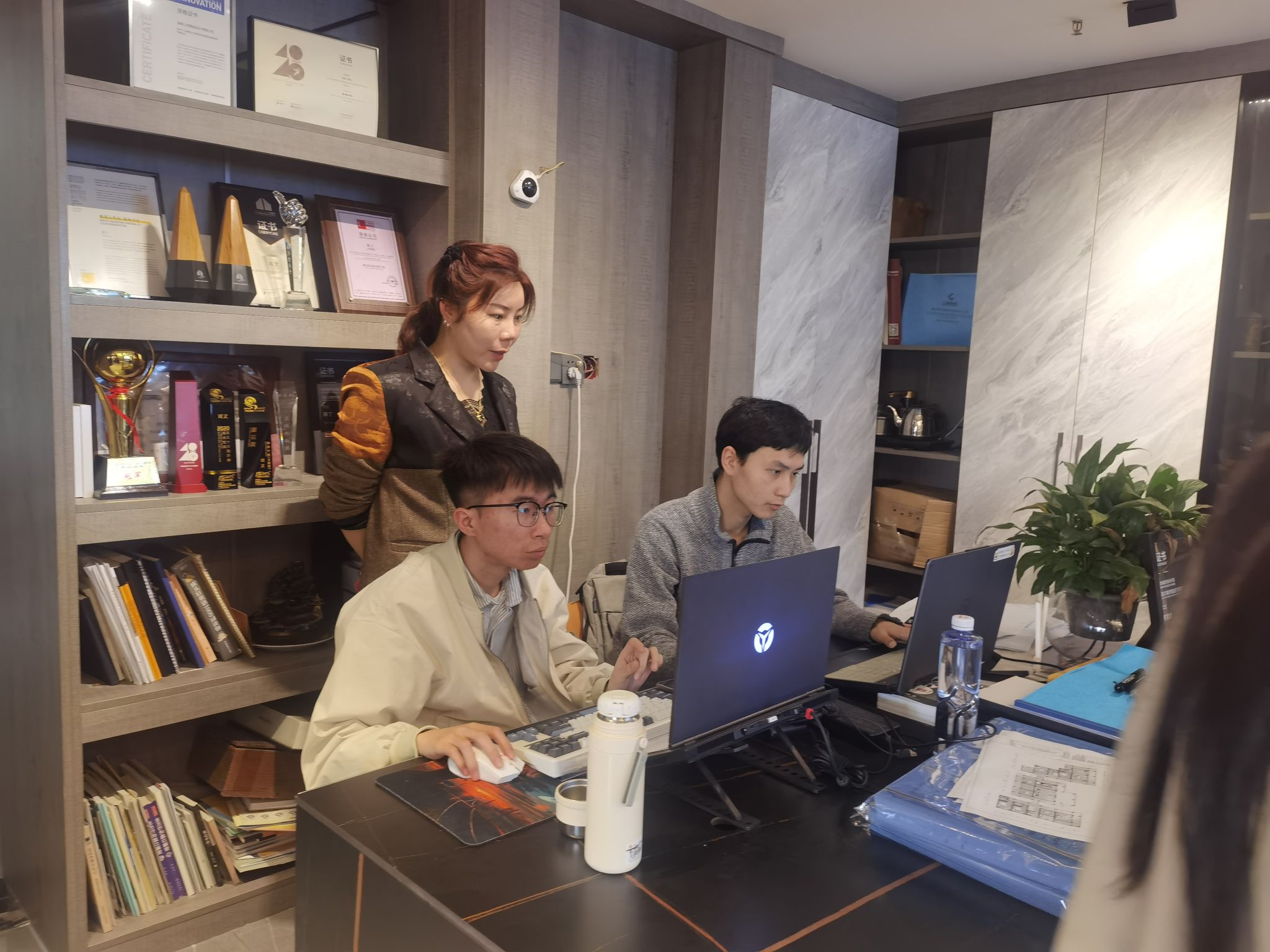 期间,谭娟带领两位教师全面检查了2020级环境设计专业的实习工作,并与企业负责人进行了深入交流。企业负责人分享了行业近年来在市场趋势、施工技术创新、数字化建设、品牌营销等方面的情况。交流过程中,企业负责人非常重视共建产学研合作平台。谭娟向企业介绍了环境设计专业23版人才培养方案和人才需求的定位等。双方决定进一步加强校企合作,促进产学研融合发展,特别是在联合人才培养、校园招聘、实习实训等方面。双方还就进一步挖掘各自优势,拓展合作空间,并就未来合作的具体方式和计划进行了共同探讨交流。