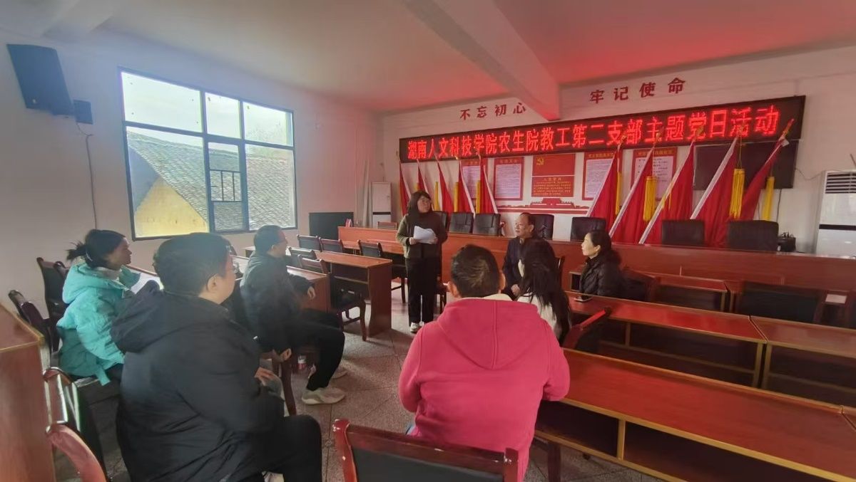 11月26日,农生院教工第二党支部在学校乡村振兴帮扶点涟源金石镇灌溪村党员活动中心开展政治理论学习主题党日活动。会议由支部组织委员宋影主持,支部全体党员参与。