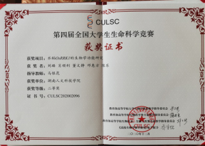 6.考研与学科竞赛 不断进行教学管理模式和机制改革,采取“典型引路,全面提高,全面发展”措施,组建学生考研班,并为考研班配备班主任和专门的学习场所,近2年,学生考研录取率达到33.5%。2015年以来,指导学生获得湖南省大学生研究性学习和创新性实验计划项目29项,其中国家级项目11项,指导学生获全国大学生生命科学创新创业大赛“一等奖”2项,“二等奖”14项,“三等奖”21项,获湖南省第六届“互联网+”大学生创新创业大赛创意“一等奖”1项。
