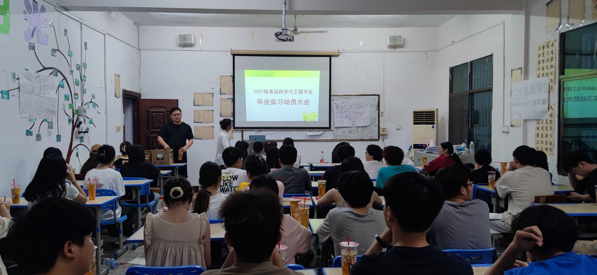 我院(所)食品科学与工程专业于2024年5月17日晚开展了2021级实习工作暨考研动员大会,本次会议由食品教研室主任谢彦瑰老师主持,21级食科班主任刘志博士及实习带队老师、21级食科专业全体学生及20级学生代表参加会议。