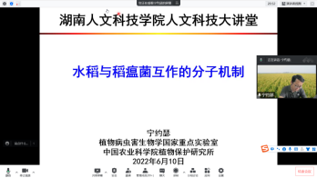 宁约瑟教授首先介绍了稻瘟病对我国水稻生产的危害(尤其湖南地区)情况以及稻瘟病在水稻上的发病特征,阐述了稻瘟病防治的复杂性,深入解析水稻与病原菌的分子互作机制对建立稻瘟病新的防控策略和技术具有理论和现实意义;重点介绍了其团队近年专注对水稻抗稻瘟病研究的科研成果,具体阐述了利用抗稻瘟病Piz-t基因创制高产优质抗病新品系的思路和方法,同时详细介绍了抗稻瘟病Piz-t基因的上下游调控基因的挖掘的方法以及对基因功能研究思路,从而解析了Piz-t-AvrPiz-t介导的水稻-稻瘟菌互作机制的重要理论和实践意义。
