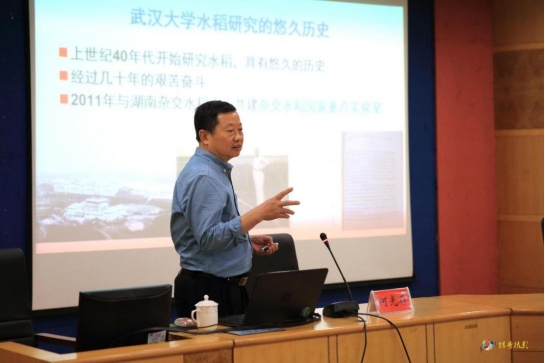 5 月30 日下午,武汉大学杂交水稻国家重点实验室主任何光存教授、祝莉莉教授级高级工程师、陈荣智博士、杨芳博士一行莅临我校“人文科技大讲坛系列活动”,分别作了题为“水稻抗褐飞虱基因研究历程”、”加强实验室建设不管理-为科技创新保驾护航”、” 水稻抗褐飞虱基因克隆及应用研究”和”生命科学的魅力”的学术讲座。讲座由校长刘和云主持,科研处处长成运、农业不生物技术学院院长向国红、农田杂草防控协同创新中心主任金晨钟及植物保护学科、作物学科部分师生共计200 余人全程参不此次讲座。
