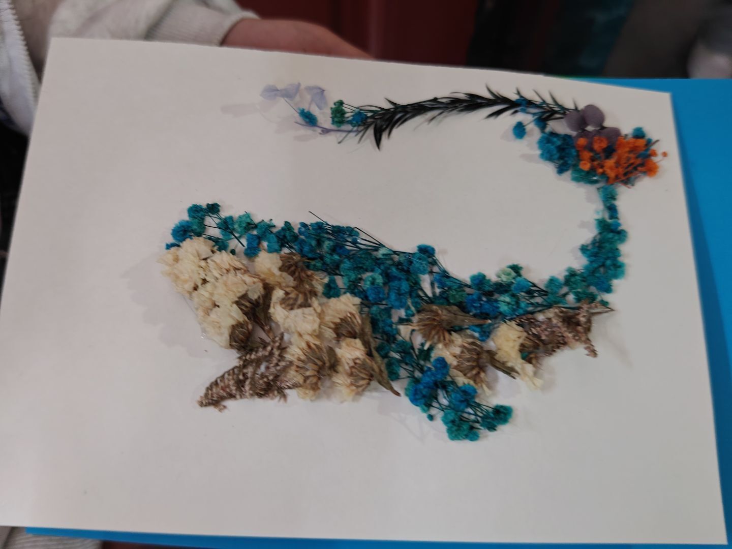 活动中,同学们以干花为材、以纸为卷,精心构思、细心粘贴,将一朵朵风干的花叶转化为富有生命力的艺术作品。在修剪、布局、黏贴的过程中,大家不仅锻炼了动手能力与审美素养,更在专注创作中体验到了耐心与细致的重要性。现场氛围温馨而投入,一幅幅独具匠心的干花画渐渐绽放于指尖,诠释了“化平凡为永恒”的创作理念。