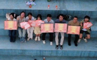 (老师和运动员们开心地捧着奖状)