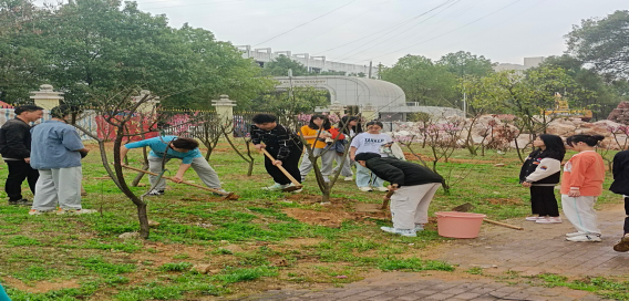 阳春三月,鸟语花香,春风怡人。早上8点,同学们早早地来到致远楼119室,对植树节的来源、意义、植树的好处以及植树的方法进行了学习。然后移步宇光球场,园林绿化室实训中心彭日民主任给大家讲解了一些植树的技巧和注意事项。陈勇院长做了总动员,他要求同学们牢记习近平总书记说过的“植树节最重要的意义就在于建立生态文明的意识和观念”;绿色是生命的颜色,也是人类永恒发展的必要条件;要践行绿色发展理念,树立‘绿水青山就是金山银山’观念,要像对待生命一样对待生态环境。合影留念后对全体同学们进行了分组,分别负责致远楼、匠成楼、阳光公寓、宇光球场东4个区域的植树任务。领取工具后,大家迈着矫健的步伐走向所分配的植树区域。植树过程中,学工办肖自勇和倪弦之老师充分发挥党员的先锋模范带头作用,率先栽下第一棵树。同学们互相配合,有的挥锹铲土、有的扶树填土、有的培土浇水,每个人都忙得不亦乐乎。经过多3个多小时的劳动,一百余棵梅花树重新“安家落户”,为校园添上了一抹新绿。