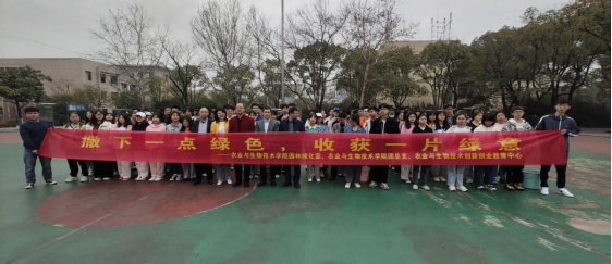 “一花一世界,一叶一菩提;种下一棵树,收成万点绿”。三月和熙的微风,伴随着万物复苏的景象,悄悄来到我们身边。3月12日上午,在第44个植树节来临之际,为进一步提高全校师生的绿色意识和文明素质,用自己的双手营造一个良好的校园环境,农生院在校园内举行了义务植树活动。农生院院(所)长陈勇,副院长、协同创新中心主任金晨钟、校团委副书记刘佳亲临现场指导工作,园林绿化室实训中心、学工办的老师,院学生会,团总支共100多人参加。