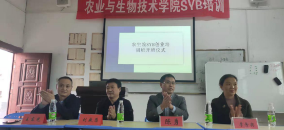 114下午,农业与生物技术学院举办了2021年第3SYB创业培训班开班仪式。学校创新创业学院大学生就业创业服务中心主任刘盛愚、农生院院长陈勇、党总支书记王东光继续教育学院李芳奕、本期班主任肖自勇老师参加会议,会议由王东光主持