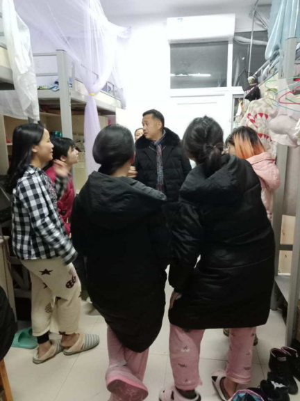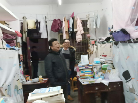 会议结束后,胡少平书记和王东光副书记带领全体辅导员班主任到各自班级寝室,督促学生在寝室注意安全、诚信参考,考试结束后第一时间回家。