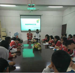 随后,学生会代表艾闽英上台发言,保证在比赛期间做好本职工作,保证运动员无后顾之忧地比赛。辅导员刘桃李老师在会上对运动员寄语,希望运动员能发扬友谊第一、比赛第二的体育精神,并预祝院篮球队能在比赛中取得一个优异的成绩。最后文体部部长张港对比赛的后勤工作做了详细的安排。