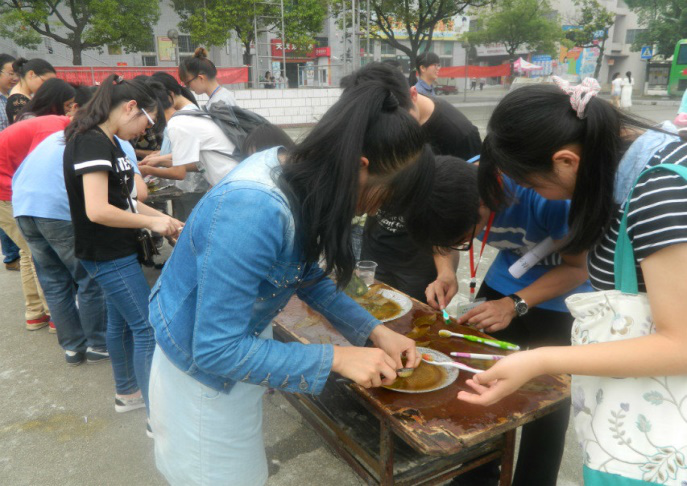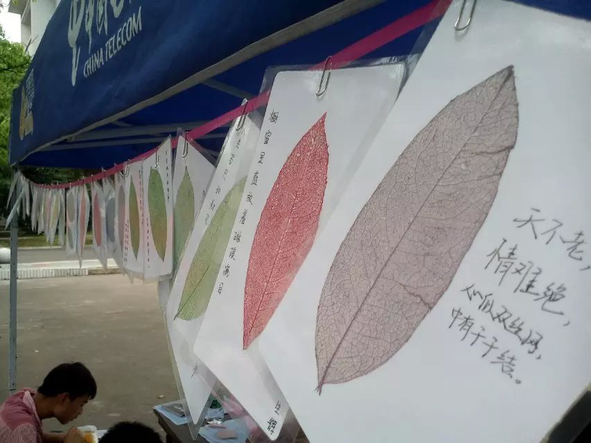 5月26日,我院在一食堂篮球场举办了第一届“向上向善,阳光启程”叶脉书签制作大赛。