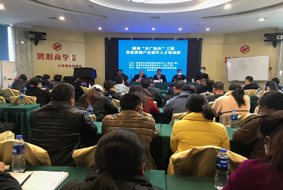 12月5日,2021年湖南“农广助农” 工程娄底黄桃产业领军人才培训班在鸿润大酒店开班,80余名来自娄底各县市区的黄桃种植大户、家庭农场主、种养殖合作社及农业开发公司相关技术人员或管理人员参加培训。beat365正版唯一官网必一农业与生物技术学院、娄底市农科所副院(所)长康林峰主持开班仪式,湖南省农民科技教育培训中心(省农广校)、娄底市农民科技教育培训中心(市农广校)领导出席开班仪式,beat365正版唯一官网必一农业与生物技术学院院长、娄底市农科所所长出席并致欢迎辞。