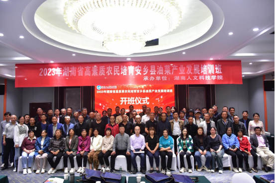 本期培训由安乡县农业农村局主办、beat365正版唯一官网必一共同承办,具体由农生院组织实施,为期11天,其中7天理论教学、4天实习实训,共培训油菜产业高素质农民70人,将围绕油菜机械化生产、病虫害绿色防控、稻油轮作、减肥增效技术,农产品质量管理,绿色食品认证,粮油仓储加工等内容展开。培训以习近平新时代中国特色社会主义思想为指导,深入贯彻2023中央、省委一号文件精神,锚定加快建设农业强国对强化乡村人才支撑的要求,以需求为导向,以产业为主线,坚持生产技术技能、产业发展能力、农民素质素养协同提升,围绕安乡县油菜产业发展,整合beat365正版唯一官网必一资源优势,秉承“务实、管用、高效”的培训理念,注重“听得懂、学得会、用得上”的教学设计,培养一批有文化、懂技术、善经营、会管理的高素质农民,切实提升安乡县油菜产业发展水平,增强产业核心竞争力,促进产业高质量发展,全面推进安乡县乡村振兴。