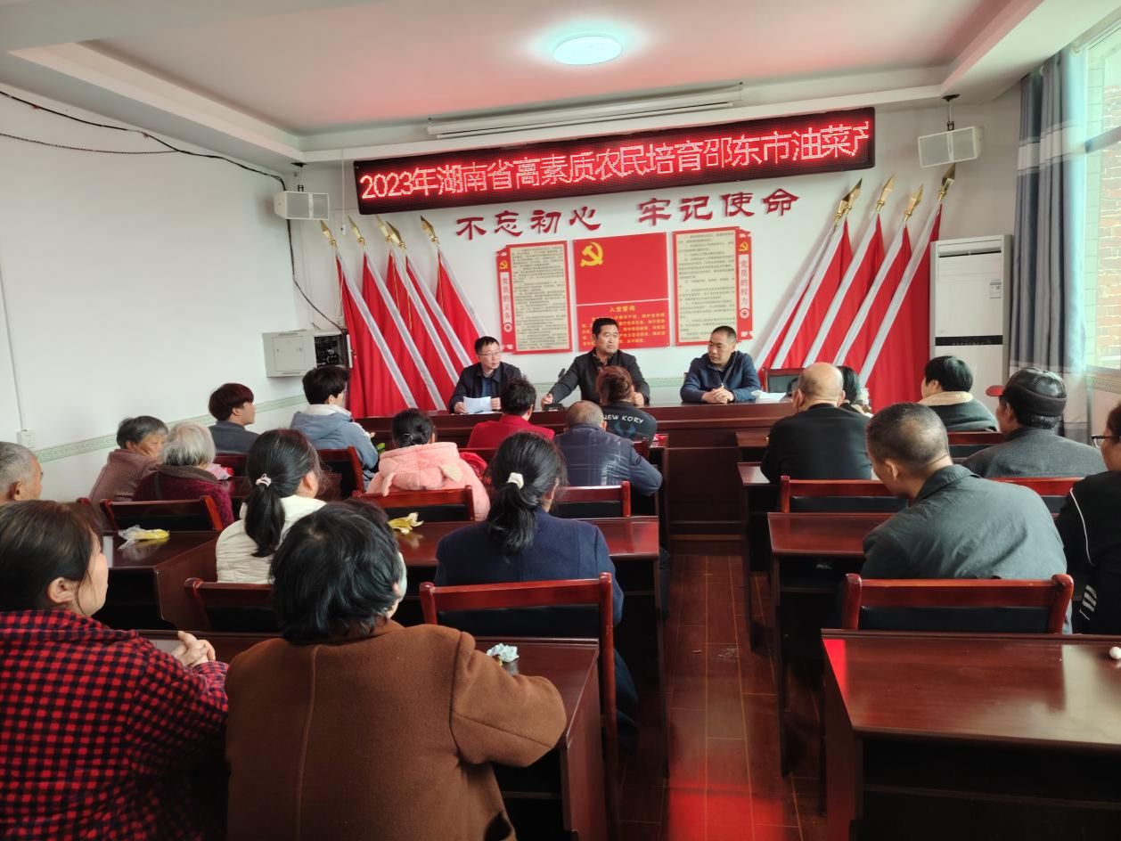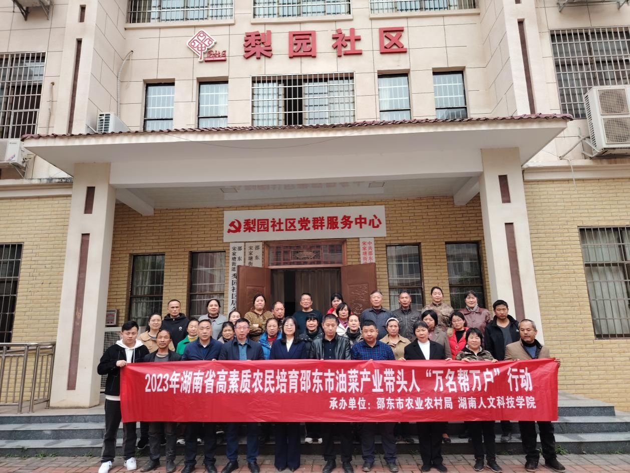3月21日-22日,农生院和邵东市农业农村局共同组织2023年湖南省高素质农民培育邵东市油菜产业带头人“万名帮万户”培训。邵东市农业农村局科教股股长曾纪群、农生院罗育才、李红建,培训班班主任彭日民组成的专家服务团队,以及邵东市油菜产业带头人培训班的部分优秀学员和从事油菜种植的小农户共80多人参加了培训行动。