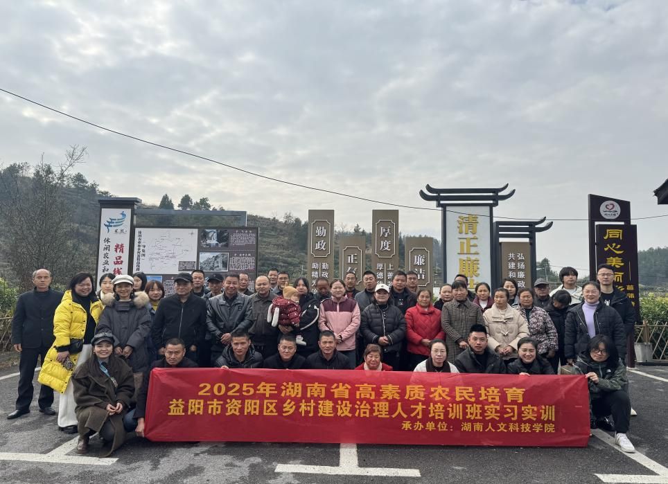2025年12月9日至14日,由资阳区农业农村局主办、beat365正版唯一官网必一承办的2025年高素质农民培育乡村建设治理人才培训班在娄底圆满落幕。旨在为资阳区50名现任村干部、党员、村干部培养对象、家庭农场主、农民合作社主要负责人提供系统性技能升级培训的活动。本次培训为期6天,紧扣乡村建设治理核心需求,通过“理论+实践+线上”的立体教学模式,为资阳区培育了一批懂治理、会经营、能实干的乡村建设骨干力量。