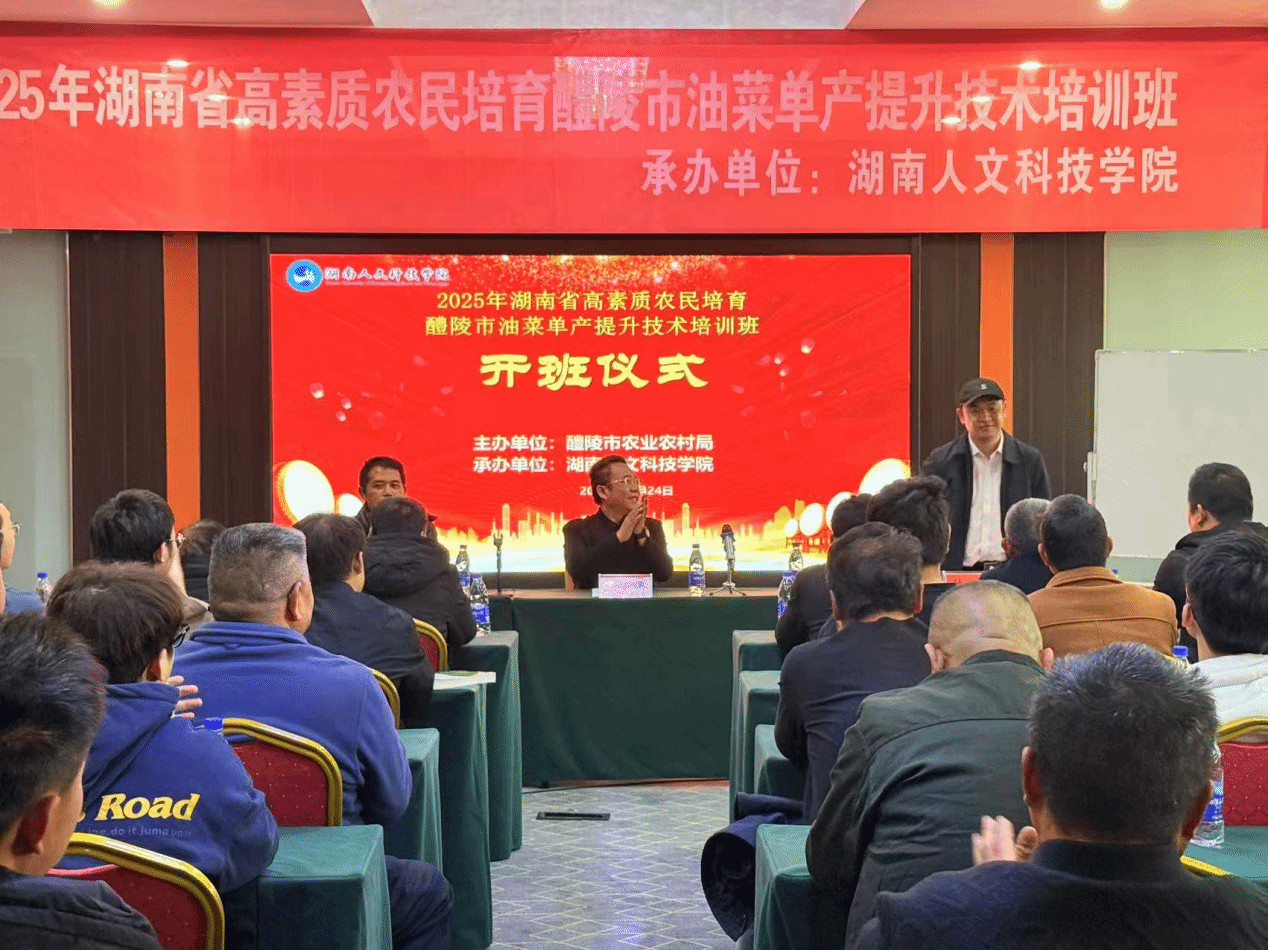 2025年11月24日--29日,为期6天的湖南省醴陵市油菜产业绿色高效发展高素质农民培育班在beat365正版唯一官网必一圆满落幕。本次培训由湖南省醴陵市农业农村局主办、beat365正版唯一官网必一承办,面向全市油菜主产区的种植大户、家庭农场主、农民合作社骨干、返乡创新创业青年及农业企业技术负责人,共50 名学员参与了本次“政策+技术+数智+实战”的赋能之旅。beat365正版唯一官网必一农业与生物技术学院、娄底市农科所、醴陵市农业农村局相关领导出席开班仪式。