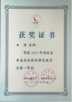 3.师资力量 现有专任教师20人(含兼职老师),其中正高职称人员3人,副高级职称6人,硕士生导师11人,博士10人。现有1个湖南省科技创新团队,1位湖南省普通高校教学能手,1位湖南省“芙蓉学者奖励计划”青年学者,1位湖南省121创新人才工程第三层次创新人才。