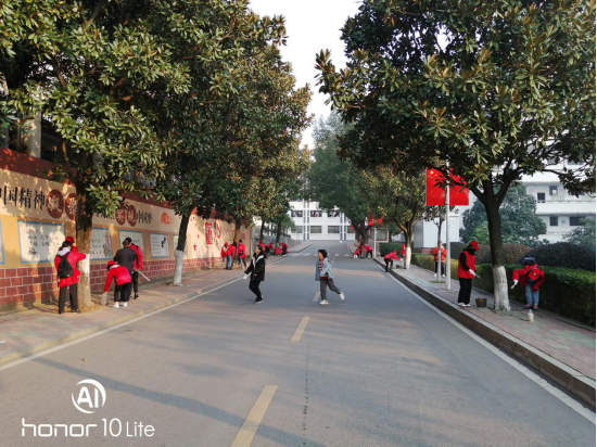 图二 学子们为书山路行道树刷白