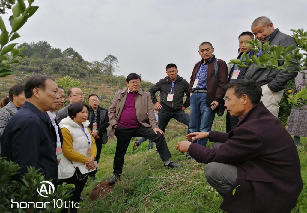 考察团队结束麻阳之行后,带着唐代诗人王昌龄“醉别江楼桔柚香”的美好憧憬,来到洪江市岩垅乡的黄金贡柚基地,果农钦祖国对贡柚生长的沙壤和温湿气候进行了介绍,对黄金贡柚的种植技术进行了详尽地讲解,毫无保留把关键技术传授给考察团队的农民兄弟,不厌其烦地对每一个学员的提问进行了解答。据洪江农业局科教股长向繁介绍,当地黄金贡柚用纯自然有机肥种植,品味独特,肉质柔嫩,香甜微酸,富硒、维C含量高,有清脾去火之功效,乃柚中之极品。