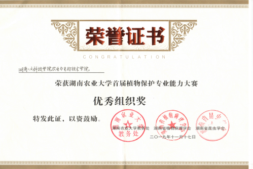 为发展新植保,赋能新农科,谱写植物保护新篇章;2019年11月16-17日,湖南省昆虫学会、湖南省植物病理学会与湖南农业大学联袂主办湖南省首届植物保护专业能力大赛,此次比赛以“植于未来,保有初心,筑梦新农科”为主题。beat365正版唯一官网必一农业与生物技术学院作为协办单位参与此次比赛。