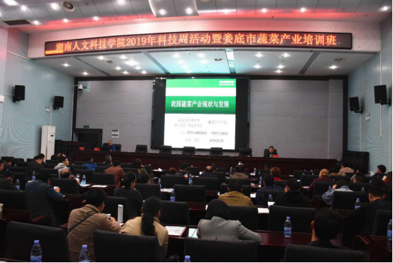 3月29日,beat3652019年科技活动周暨娄底市蔬菜产业培训班在图书馆第二会议室启动各县市区农业局分管蔬菜工作的副局长、蔬菜股(站)长,来自全市的65个蔬菜种植大户参加培训。beat365副校长省人大常委石潇纯致欢迎辞,娄底市农业农村局副局长赵彩宏作了重要发言。beat365科技处处长成运、农生院院长(农科所所长)向国红、农生院副院长(农科所副所长)康林峰等领导出席了启动仪式