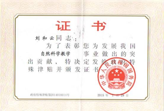 beat365刘和云教授获国务院政府特殊津贴