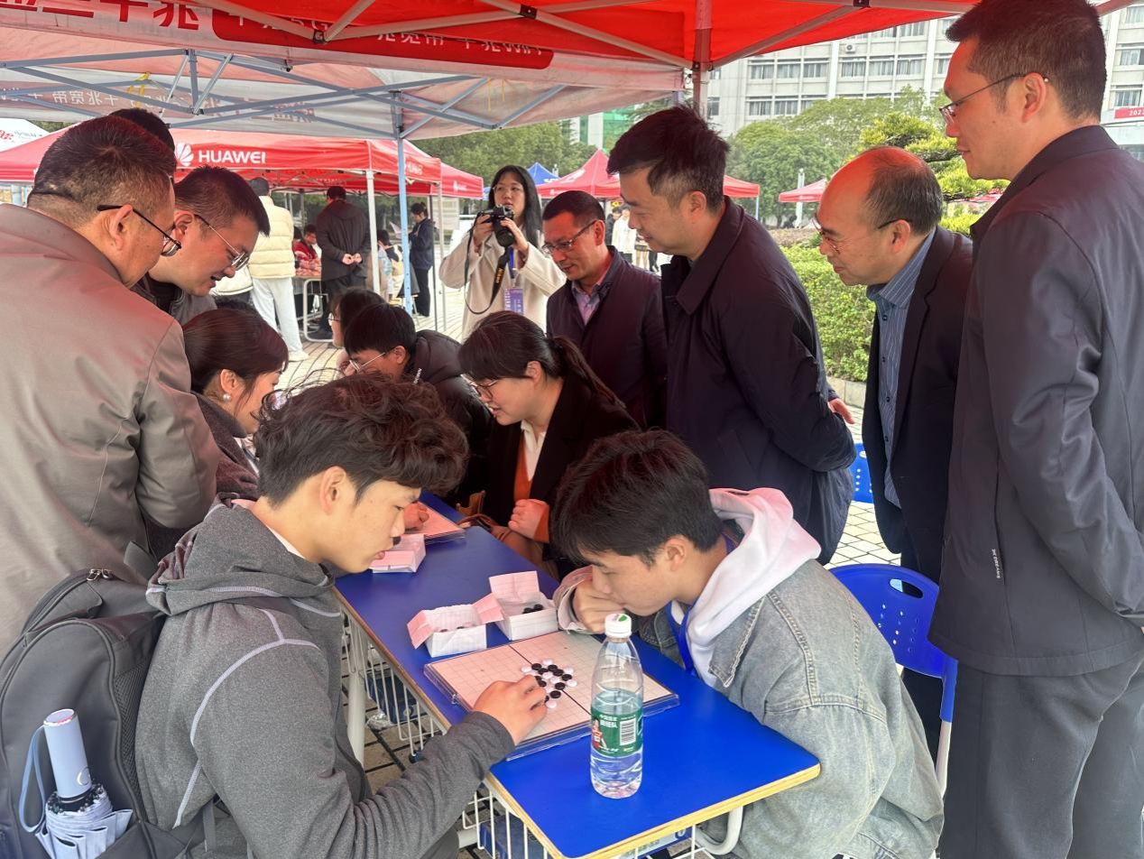 开幕式结束后,各位领导老师莅临海园广场“数学游园会”现场进行指导。“数学游园会”以魔方挑战赛、文字与数字、象棋挑战赛、相邻数、一起来猜谜、巧算24点等活动为载体,来自各学院不同专业的学生们踊跃参加各项活动。