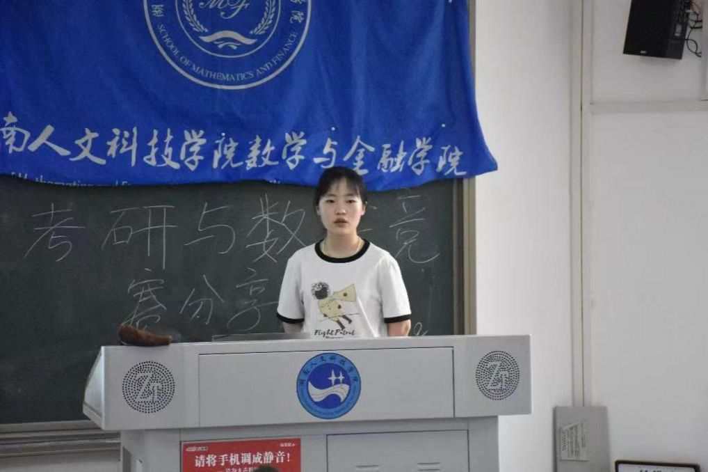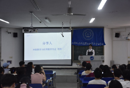 邱巧、周美程两位同学主要从数学竞赛的备赛准备、比赛注意事项、赛后总结分享了自己的参赛经历和心得体会。丁格、刘逵宇、刘丹、唐凤、文佳乐五位同学分别通过线下与在线上方式分享了自己的备考经验和“考研妙招”。吴斯对数学竞赛和考研的重要性进行了强调,同时鼓励大家积极参加各项比赛。