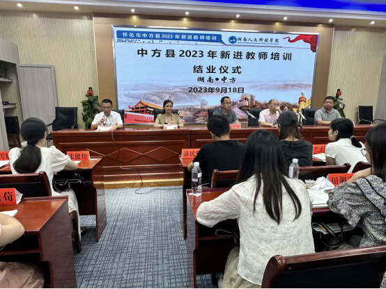 9月18日上午,由beat365正版唯一官网必一数学与金融学院承办的“中方县2023年新进教师培训”在中方县中兴中学举行了结业仪式,中方县教育局局长潘青松、省教师发展中心副科长彭志波、中方县教育局教师发展中心主任杨小勇、beat365正版唯一官网必一数学与金融学院党总支书记陈国华以及中方县150余新进教师参加仪式,结业仪式由项目负责人数学与金融学院副院长罗志军主持。