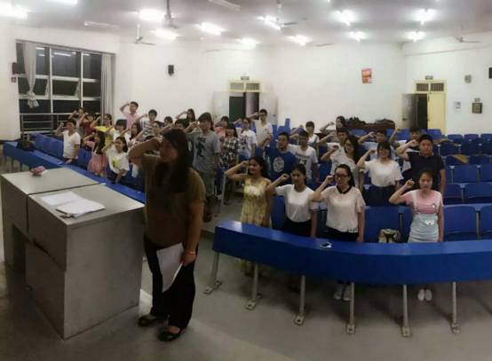 ,数学与金融学院信计与金融工程学生党支部与数学与应用数学学生党支部在致远楼120教室举行了庄严的新党员入党宣誓仪式。数学与金融学院党总支高平书记、周兰副书记、学生党支部书记张蔚、史卫娟,13名学生党支部正式党员和25名预备党员参加了此次宣誓仪式。仪式由学生党支部书记史卫娟主持。