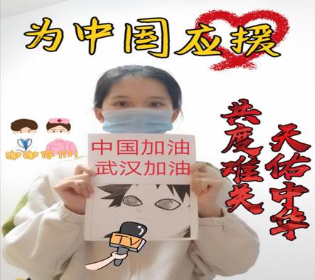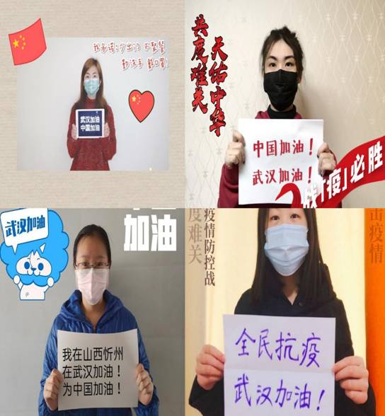 玉安平同学用手中的画笔将印象深刻的人物用漫画的形式表现出来,对抗击疫情前线的工作人员表示衷心的感谢,并为他们加油鼓劲。周昊同学用心书写“中国加油、武汉加油”的激昂文字,书写对党的忠诚和战胜疫情的决心。其他学生党员自发参与到“为抗疫发声,为武汉加油”的倡议中,身在不同地区的学生党员通过倡议,让每一位党员感受到了组织的号召,用实际行动投身到疫情斗争之中。