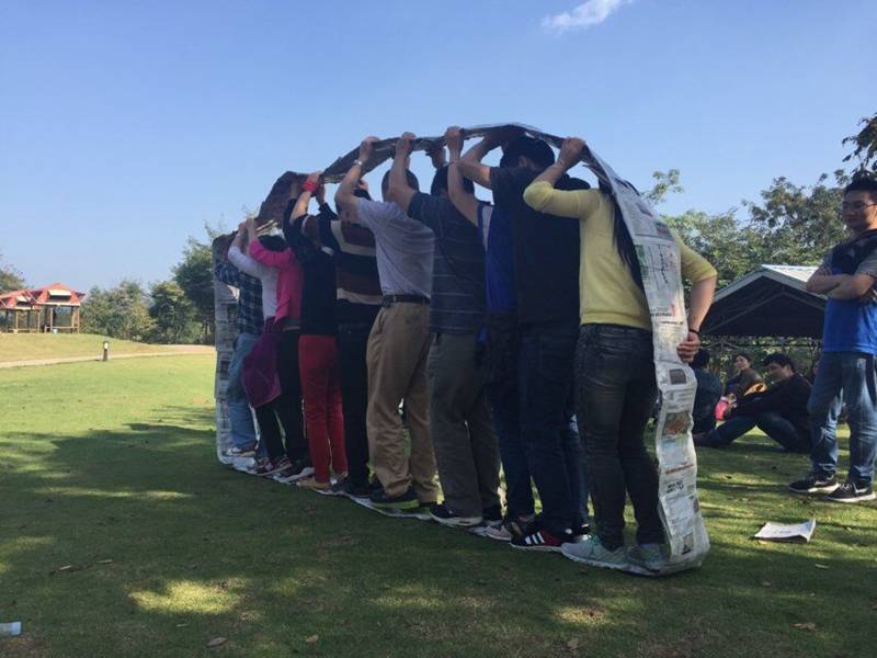 活动在高书记的讲话中拉开序幕,第一个环节为破冰小游戏,大家通过简单的破冰游戏进入角色;上午的活动是同心鼓竞技活动、有轨电车和贴身靠;下午游岛后,接着是信任背摔和无敌风火轮。