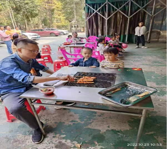 初入山庄,眼前树木郁郁葱葱,山道弯弯曲曲,层林尽染,秋景美丽,正是我们远离喧嚣的城市释放心灵的好去处。进入园区,有些老师约上三五好友爬爬山,有些老师用相机记下美丽的画面,有些老师大展厨艺自助烧烤,有些老师尽情的K歌,还有老师在晒晒太阳,聊聊天,好不惬意!夕阳西下,我们依依不舍的踏上归途。