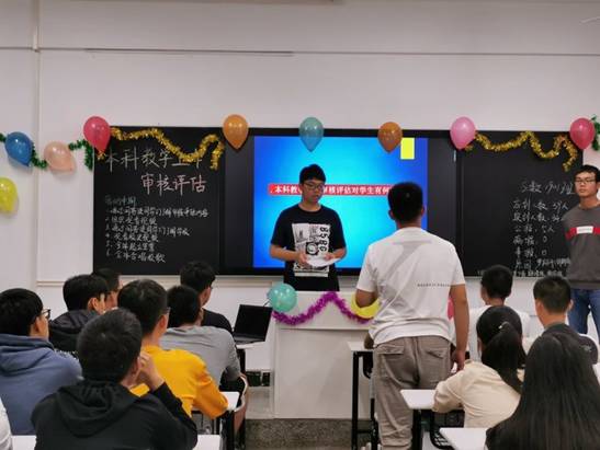 1011日晚,数学与金融学院在致远楼各班教室开展了迎审核评估主题班会,19级全体学生参加了班会,辅导员孙蔚菁老师到场指导。