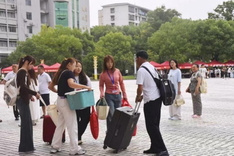 志愿者化身“摆渡人”,青春奉献显担当。校门口、宿舍楼下、报到点间,随处可见身着志愿服的学生志愿者忙碌的身影。他们主动上前接过新生的行李箱,充当“校园向导”,指引新生前往报到点;在手续办理区,协助工作人员核对信息、发放校园卡与迎新礼包;针对新生提出的宿舍设施、食堂就餐、校园交通等问题,工作人员与志愿者均一一细致回应,确保新生“带着疑问来,揣着安心走”。 遇到携带大件行李的新生,更是全程护送至宿舍,用热情的笑容、贴心的服务,成为校园里最靓丽的“流动风景线”。