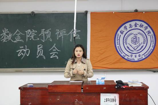 10月12日中午,数学与金融学院在致远楼320教室召开了预评估学生动员大会。全体辅导员、学生会干部、各班班长、团支书、寝室长参加了此次会议,会议由学生会主席周楚佳主持,。